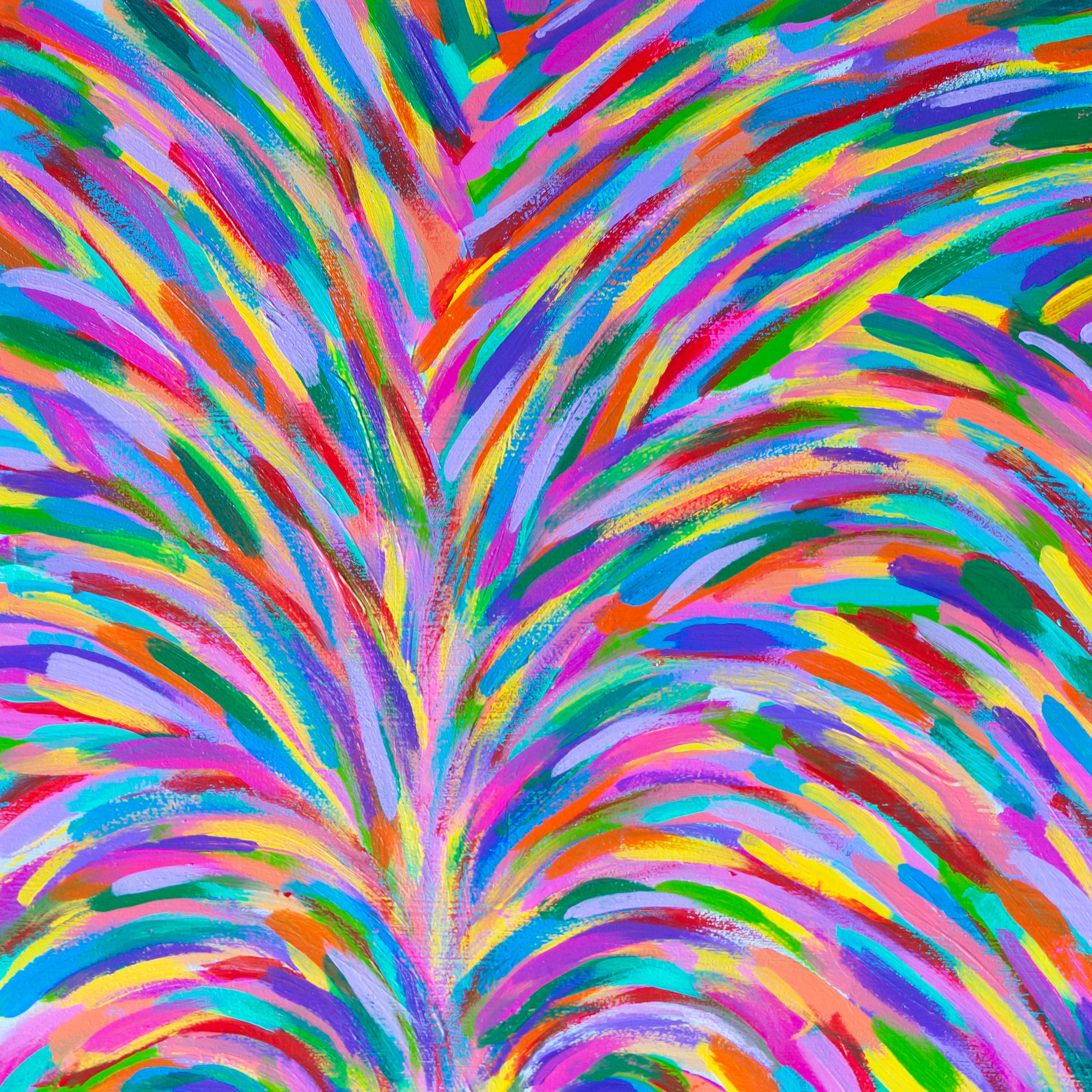 Plant Addiction is a 6x6-inch abstract painting created on Ampersand Gessobord, a gallery-quality surface that enhances its rich, layered textures. Inspired by my deep love for plants, this piece bursts with greens, blues, yellows, pinks, oranges, and teals, bringing an energetic and refreshing feel. The vibrant purple edging beautifully frames the artwork, making it a striking addition to any space.